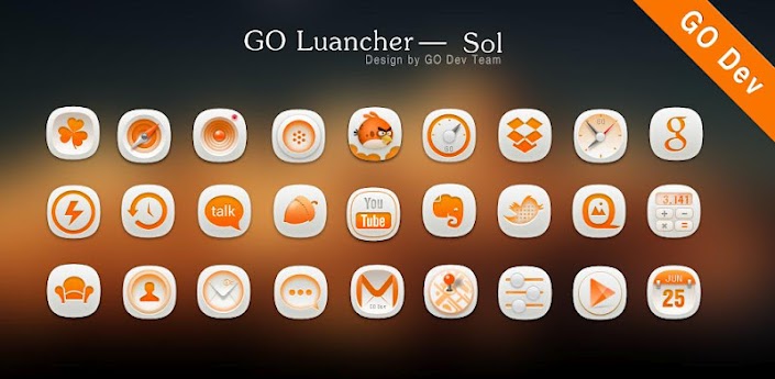Overview: Sol GO Launcher EX Theme, specially designed for GO Launcher EX, provides delicate app icons, wallpapers, folder and app drawer interface.