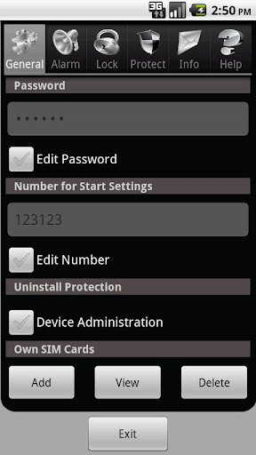 - Automatically send SMS with information about phone when battery low and inserted new SIM card.
